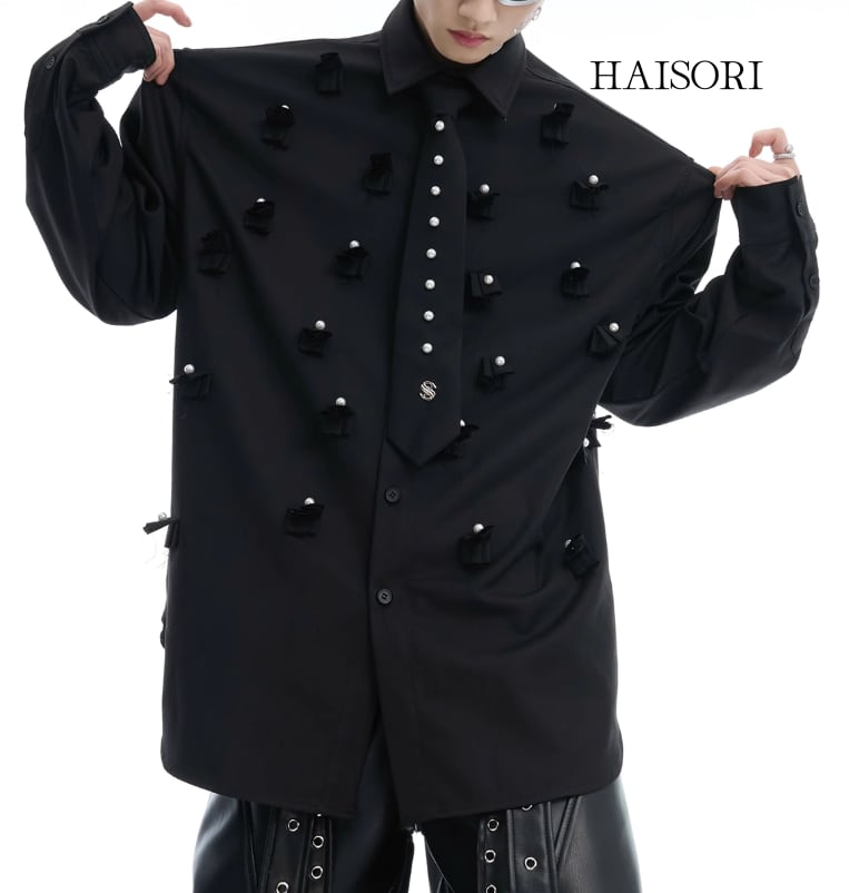 ★【 細やかな装飾を取り入れた個性的なデザイン、ネクタイ付きのトップス 】