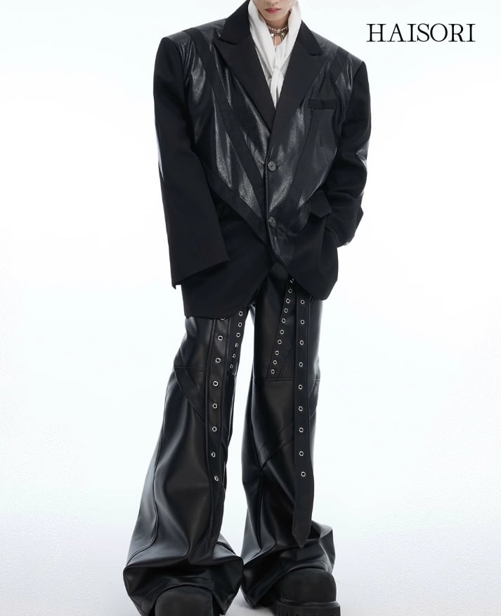 ★【 テクスチャ感のあるPUレザーをアクセントにしたデザイン、クールな風合いのジャケット 】