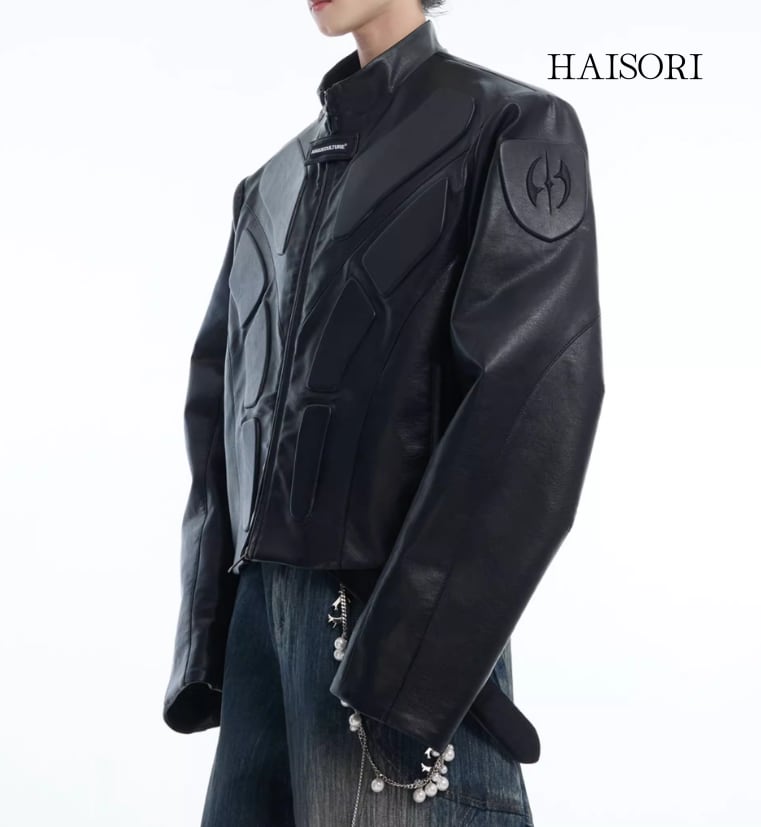 The jacket is made of PU leather and accented with an armor-like design, making it easy to match with a cool style.