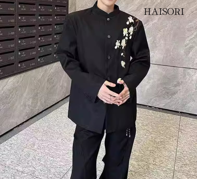 ★【 植物柄の刺繍がアクセントになったデザイン、クールな装いに最適なジャケット 】