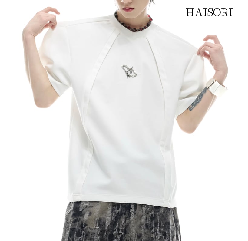 ★【 ライン加工のデザインがポイント、メタルパーツ付きのトップス 】