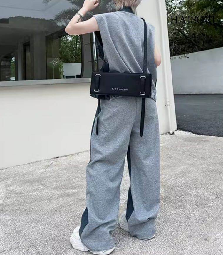 ★【 2色の生地を使用したバイカラーデザイン、ルーズシルエットのデニム地セットアップ 】