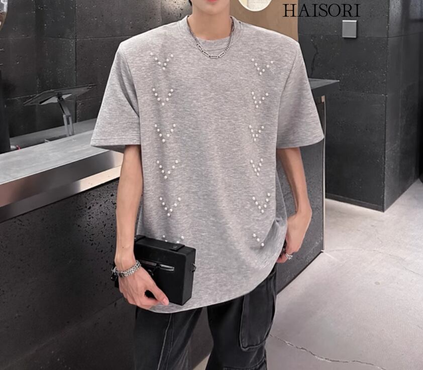 (NEW) T-shirt decorated with pearl-like beads