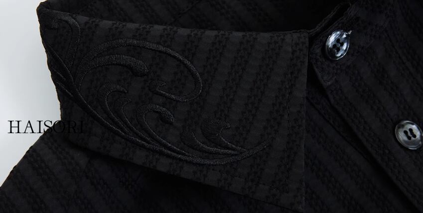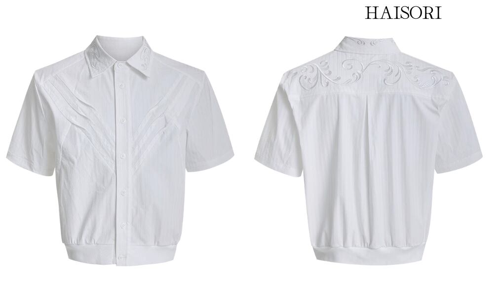 ★【 襟と背中に施された繊細な刺繍が特徴の半袖シャツです。