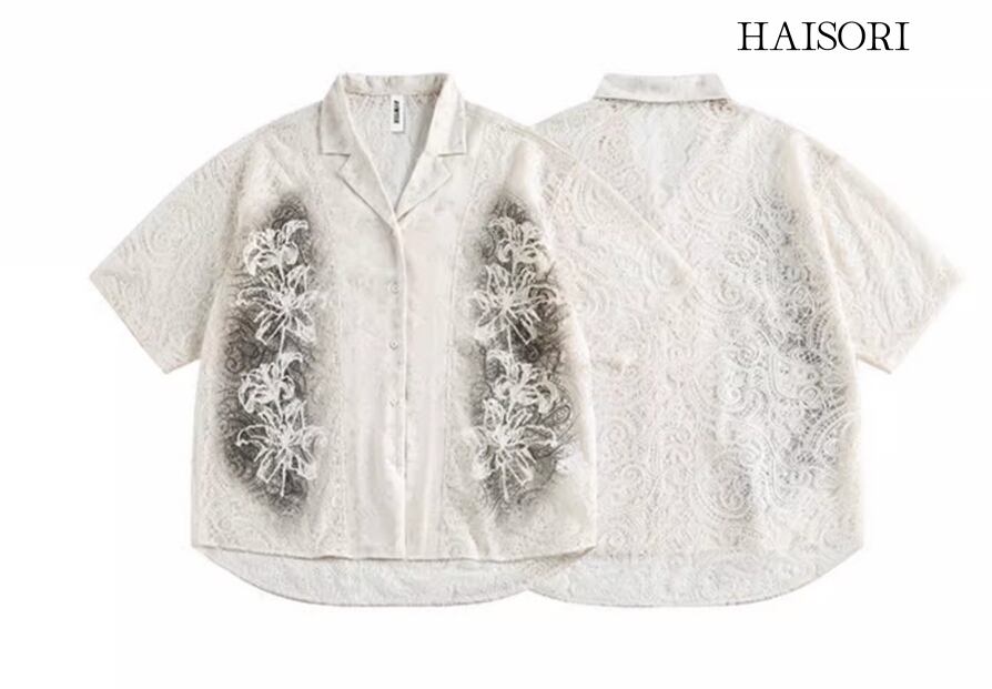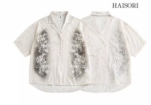 ★【 繊細な刺繍と個性的な柄が目を引く半袖シャツです。 ゆったりとしたオーバーサイズシルエットで、リラックス感のある着心地です。 主役になるデザインなので、シンプルなパンツと合わせてカジュアルながらも個性的なスタイルを楽しめます。 】