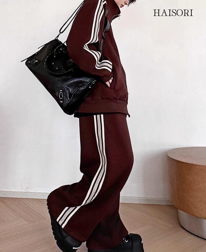 ★【 両袖とパンツのサイドに2本のラインが入った、ジャージ風のセットアップです。
