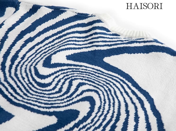 ★【 大胆な模様が目を引く、個性的なデザインのニットセーターです。