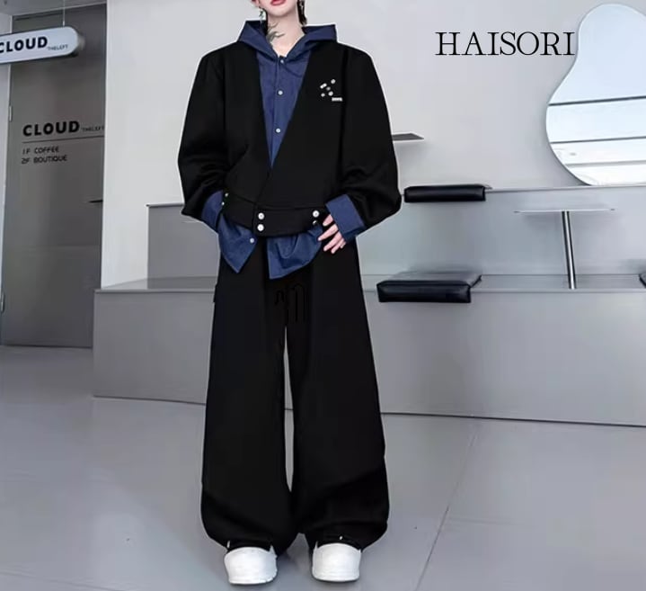 (NEW) Fake-Layered Jacket and Wide-Leg Pants Set-Up