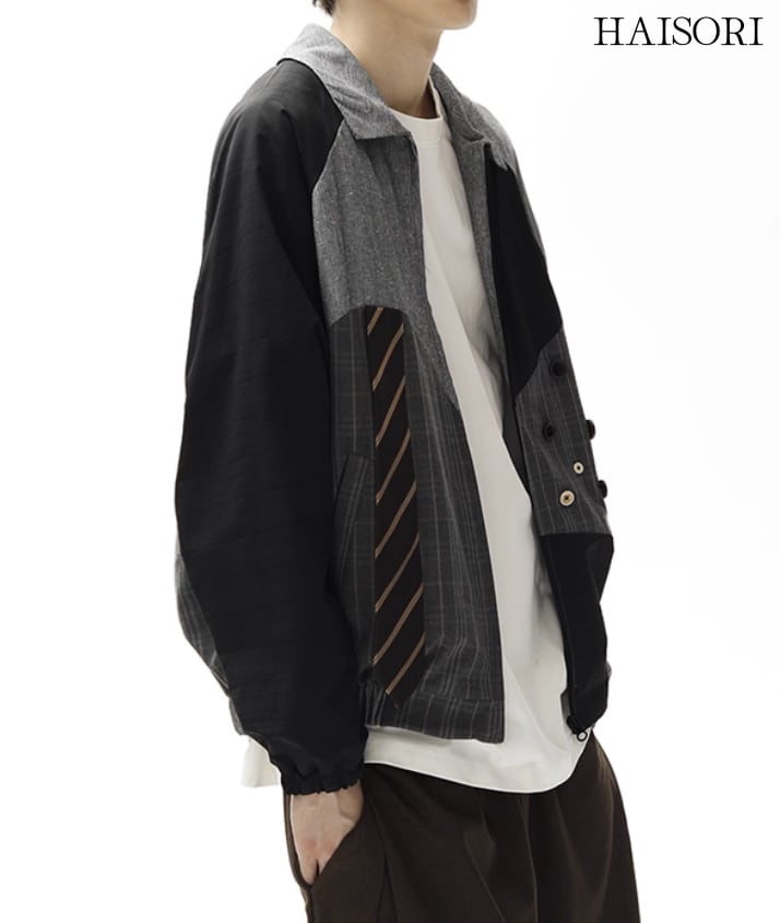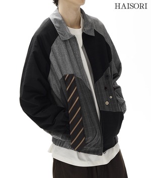 ★【 異なる質感の生地を組み合わせた、パッチワーク風のジャケット。