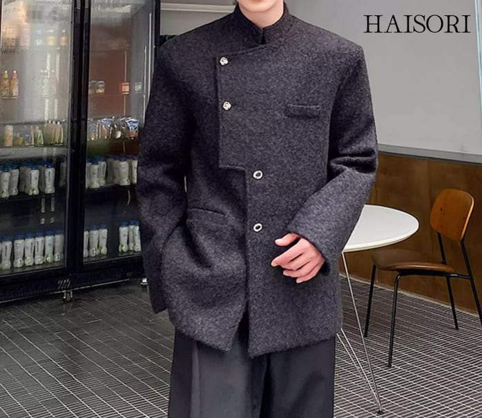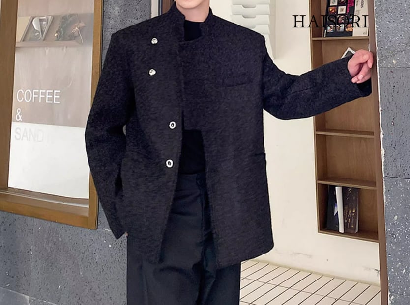 ★【 チャイナカラー(スタンドカラー)とざっくりとした生地感が特徴の、個性的なメンズジャケットです。