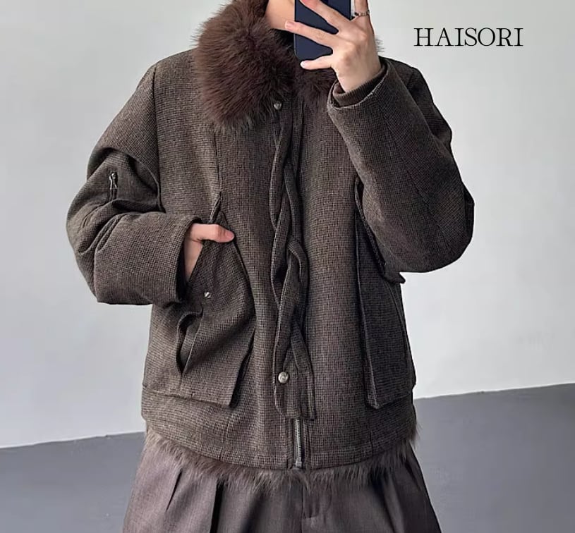 ★【 暖かみのあるツイード風生地を使用し、取り外し可能なファー襟と内側ファーで防寒性を高めたブルゾンです。