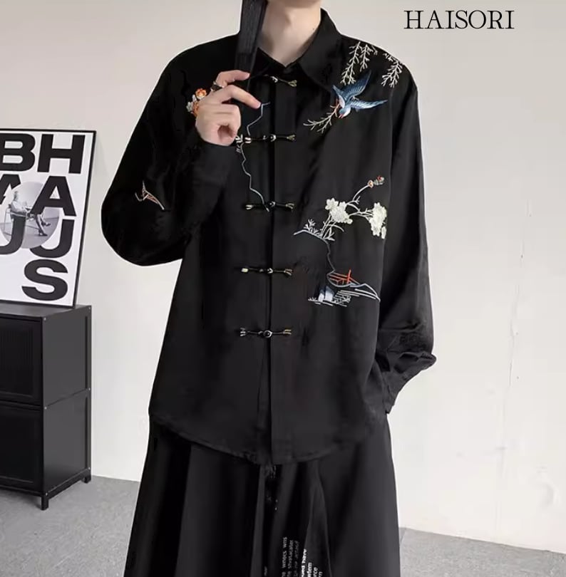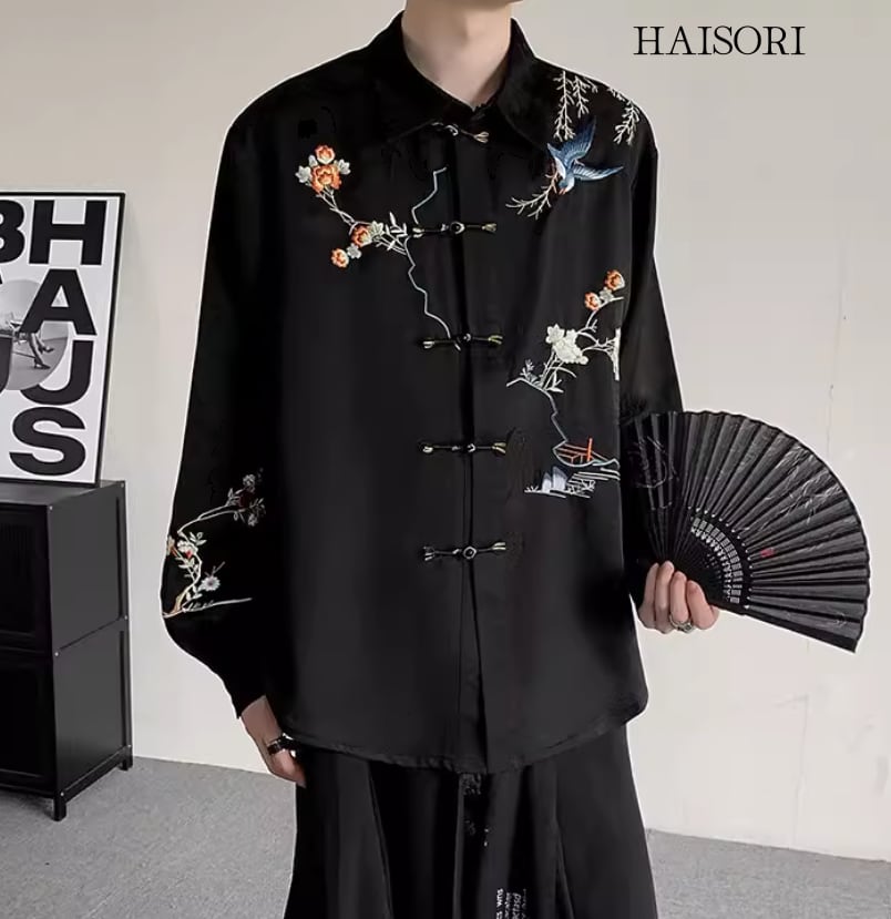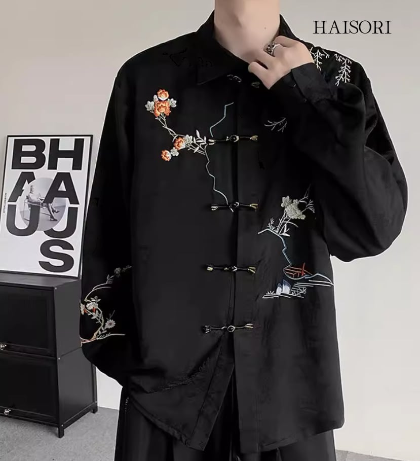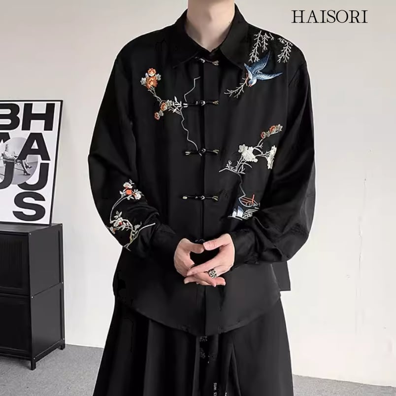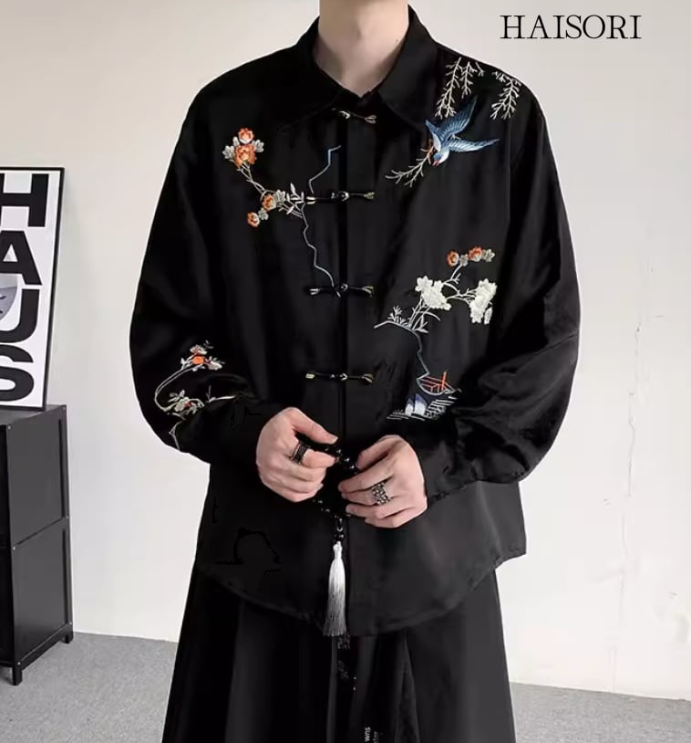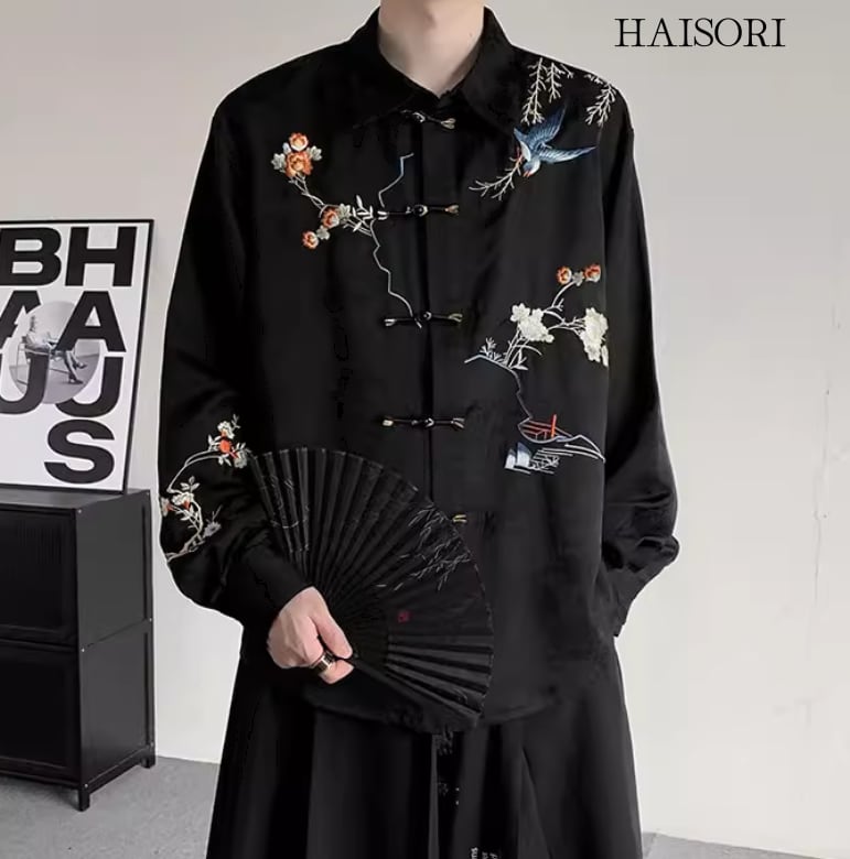 (NEW) モダンチャイナ・刺繍オリエンタルシャツ