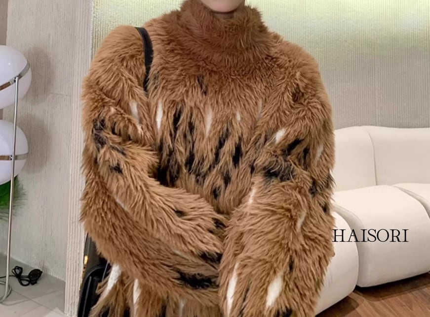 ★【 毛足の長い贅沢なエコファー生地を使用した、圧倒的な存在感を放つハイネックプルオーバーです。