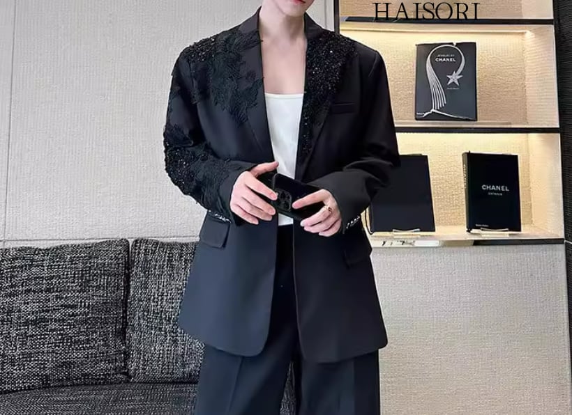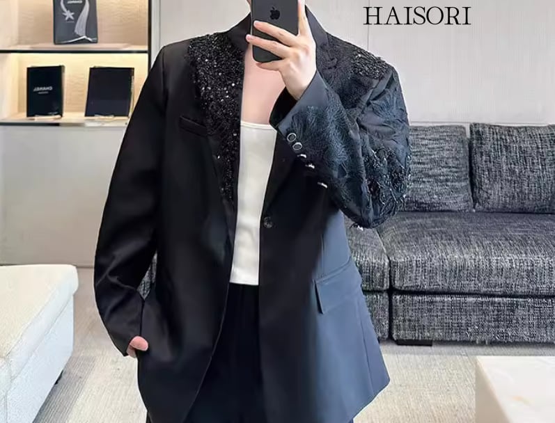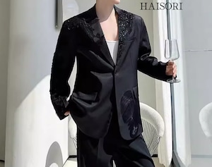 ★【 繊細なレース刺繍と煌めくビジュー装飾を大胆にあしらった、ラグジュアリーなテーラードジャケットです。