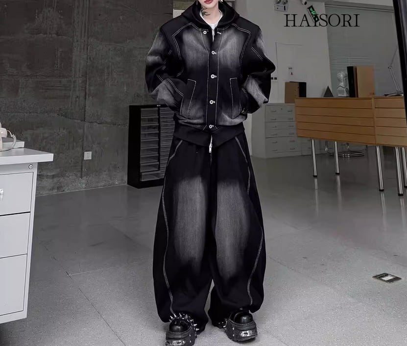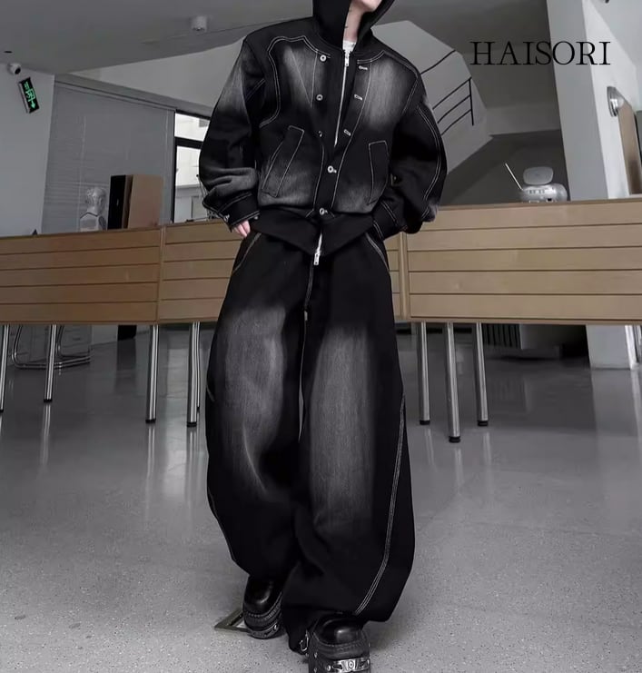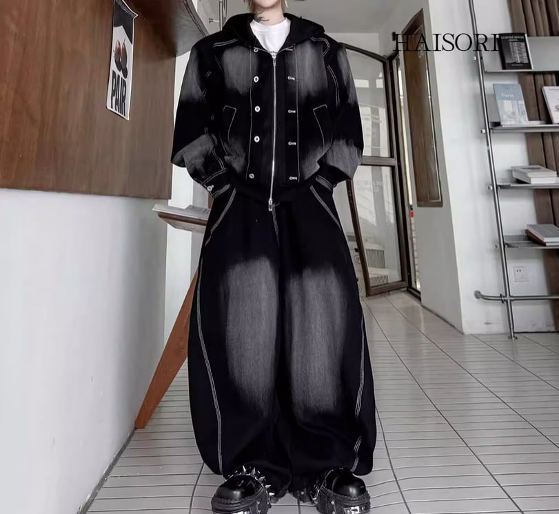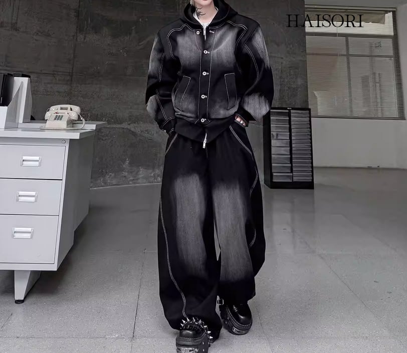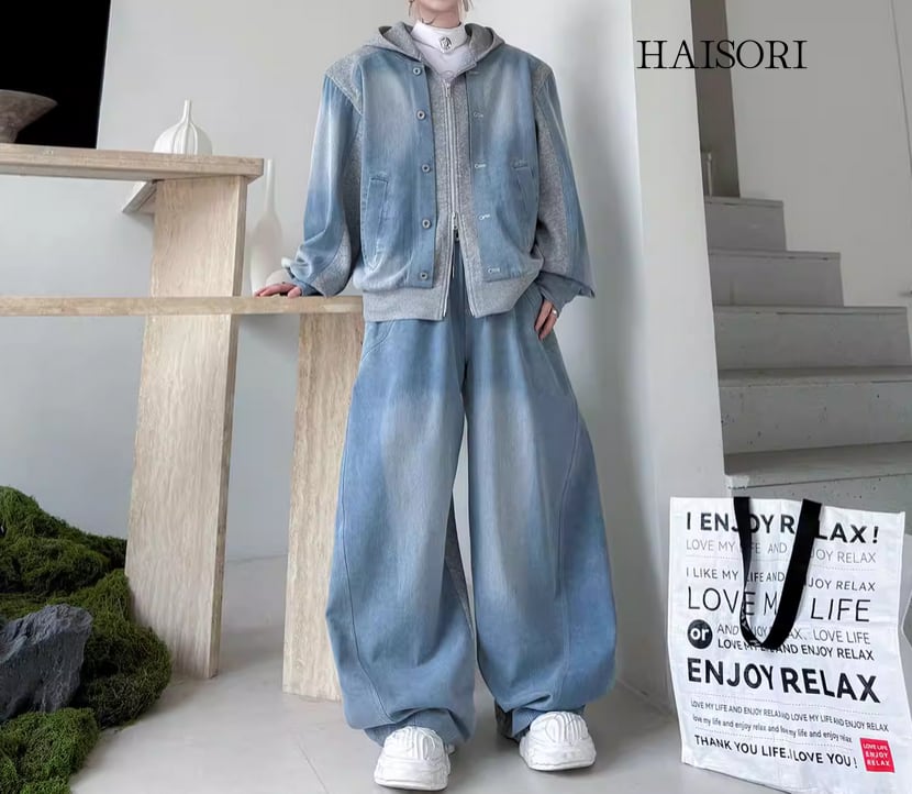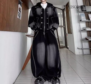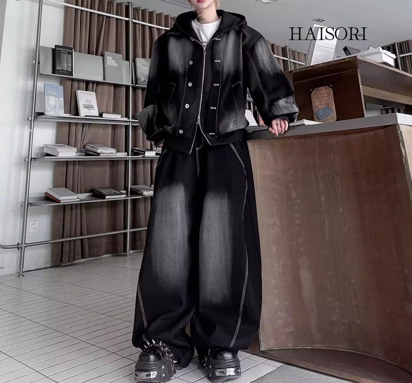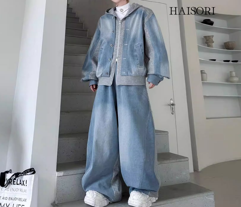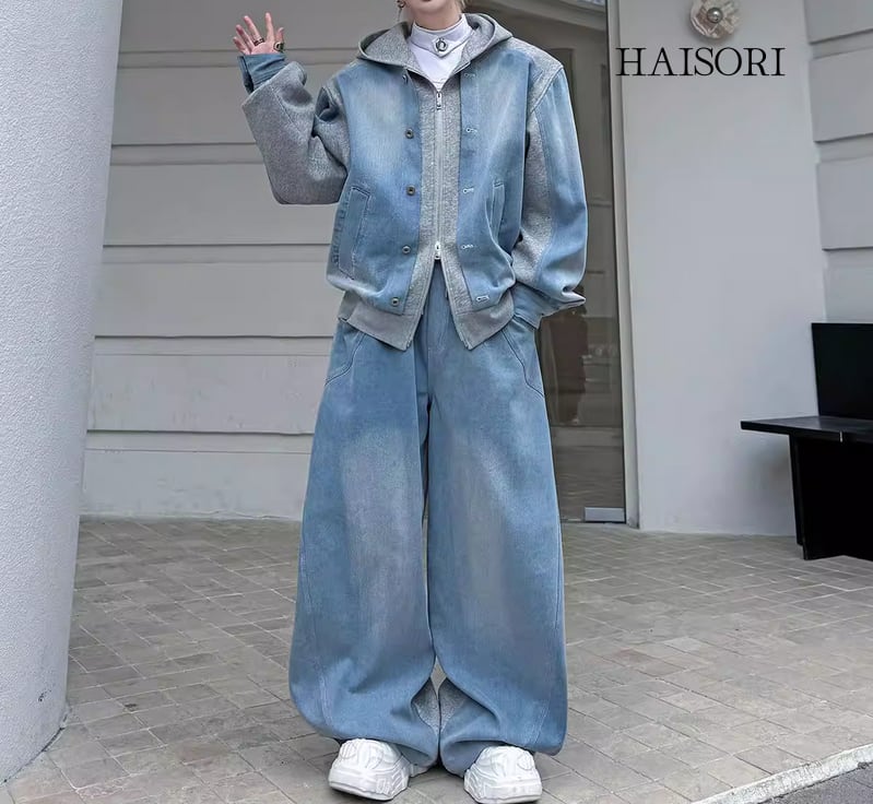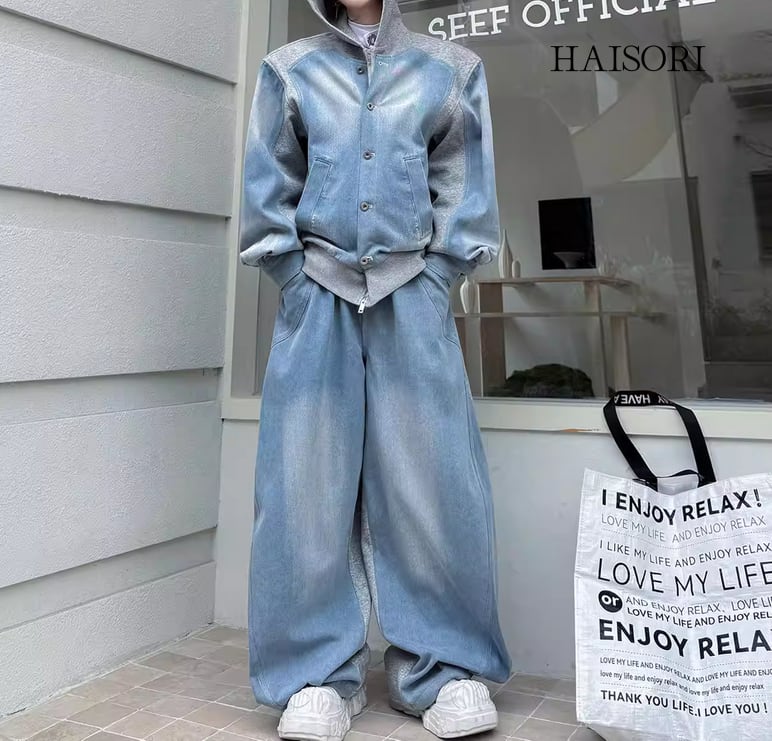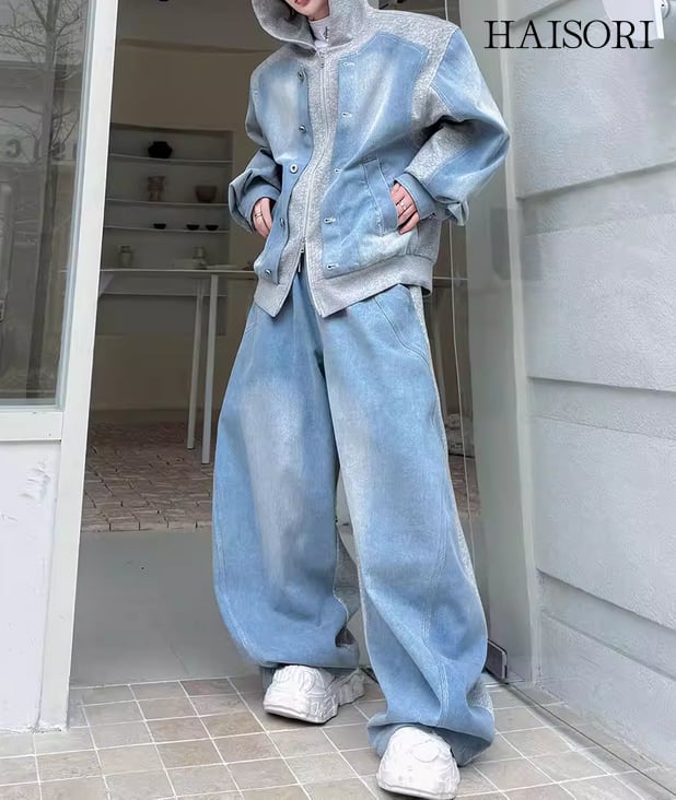 ★【 ウォッシュ加工を施したデニムとスウェットパーカーをドッキングさせた、レイヤード風のデニムセットアップです。