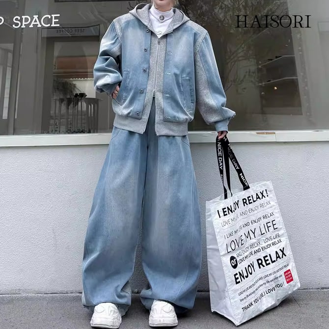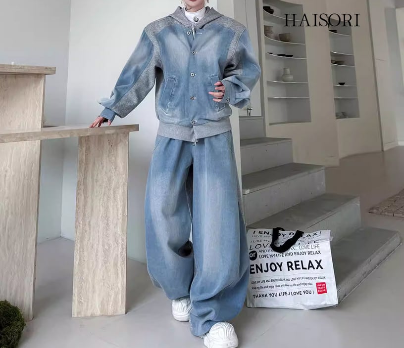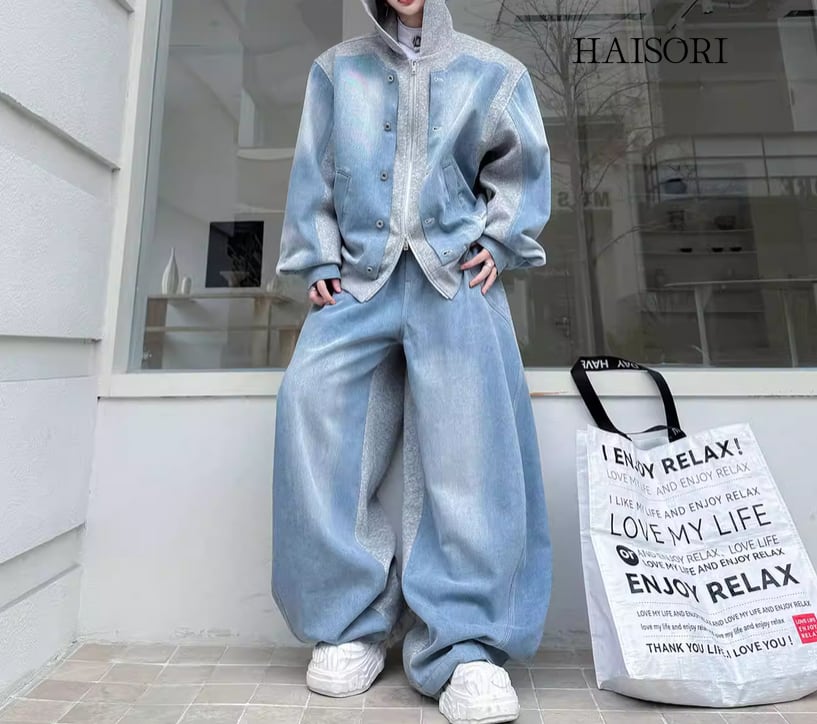 デニム・レイヤードフーディ・セットアップ