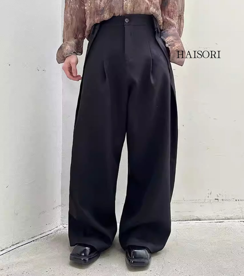 ★【 洗練されたワイドシルエットが、ドラマティックな存在感を放つメンズスラックスです。