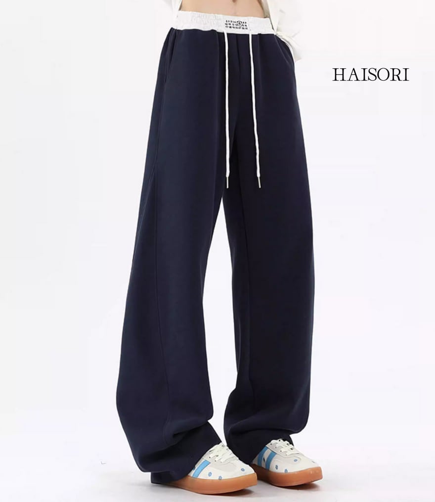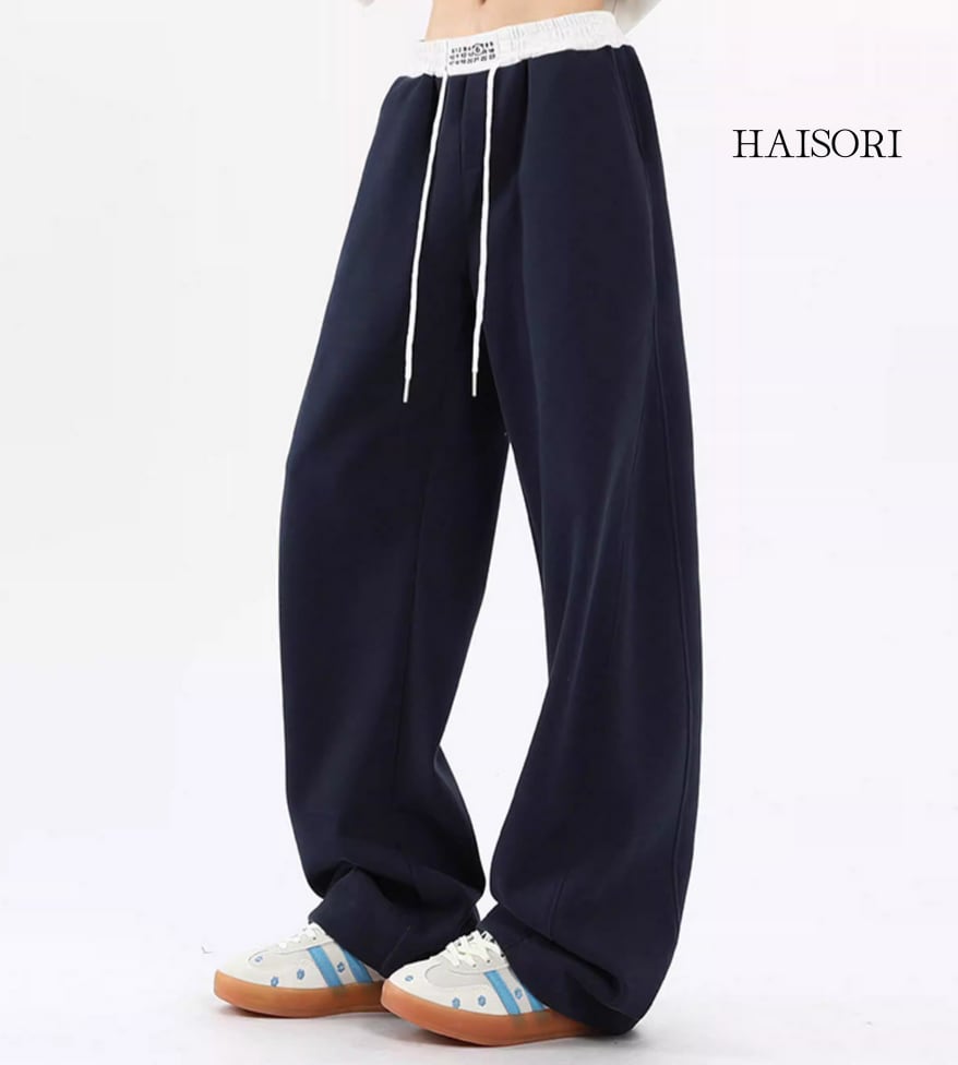 コントラストウエスト・ルーズワイド・スウェットパンツ