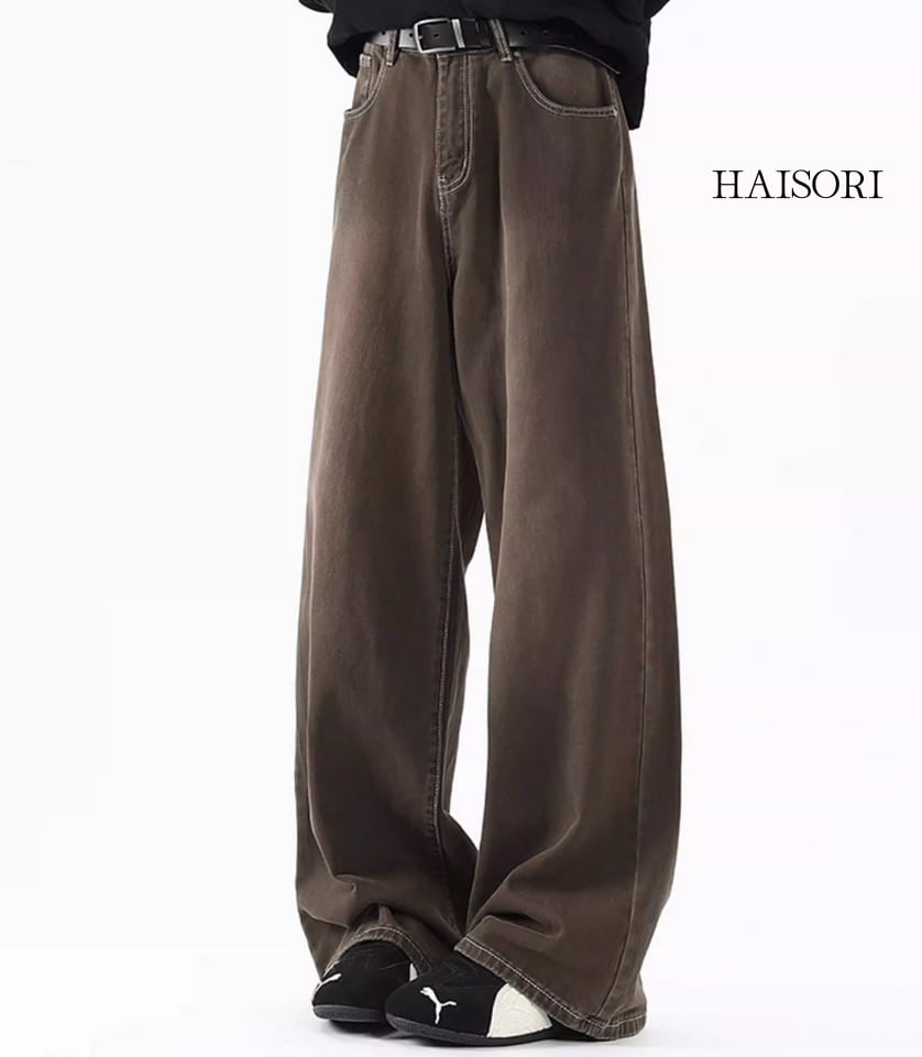 ★【 深みのあるブラウンのカラーリングが、ドラマティックでヴィンテージライクな表情を見せるルーズデニムパンツです。
