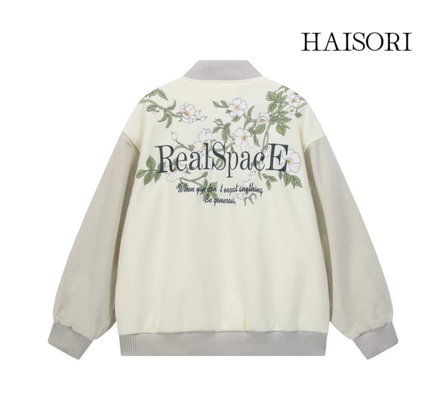 ★【 クリーンな生地に、繊細なタッチで描かれたグリーンの草花刺繍がドラマティックに映えるスタジアムジャケットです。