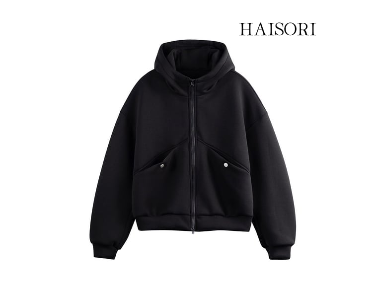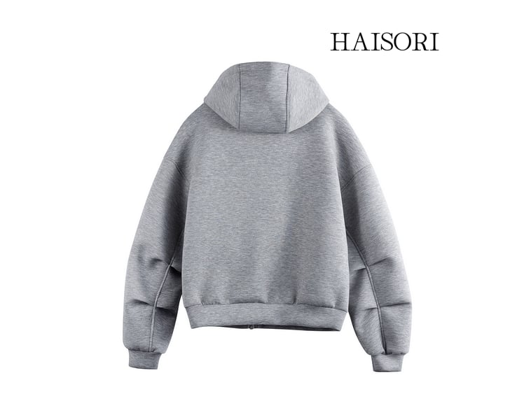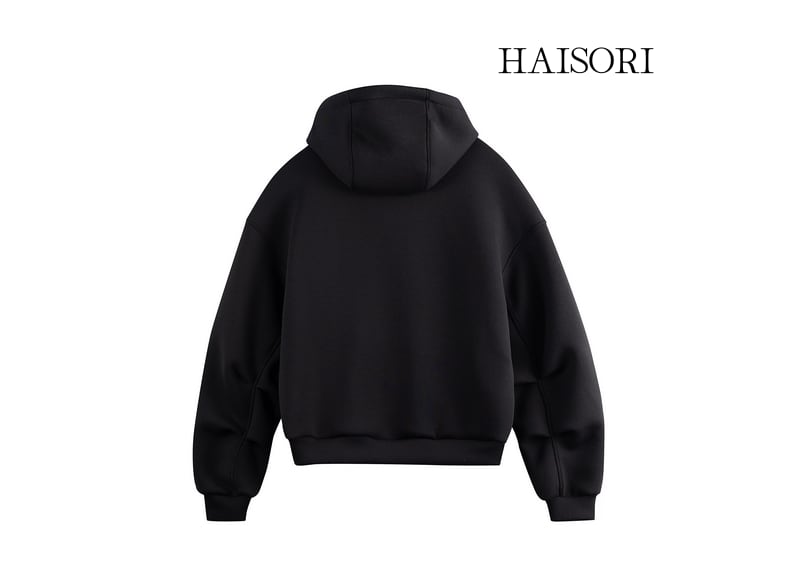 首元までしっかりカバーするハイネックのフードと、着こなしに変化をつけられるダブルジップ仕様が、都会的でエッジの効いたモードスタイルを演出します。