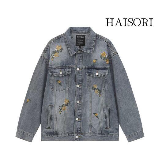 ★【 表情豊かなウォッシュ加工を施したデニム生地に、鮮やかなイエローの花柄刺繍を散りばめた、ドラマティックなメンズジャケットです。