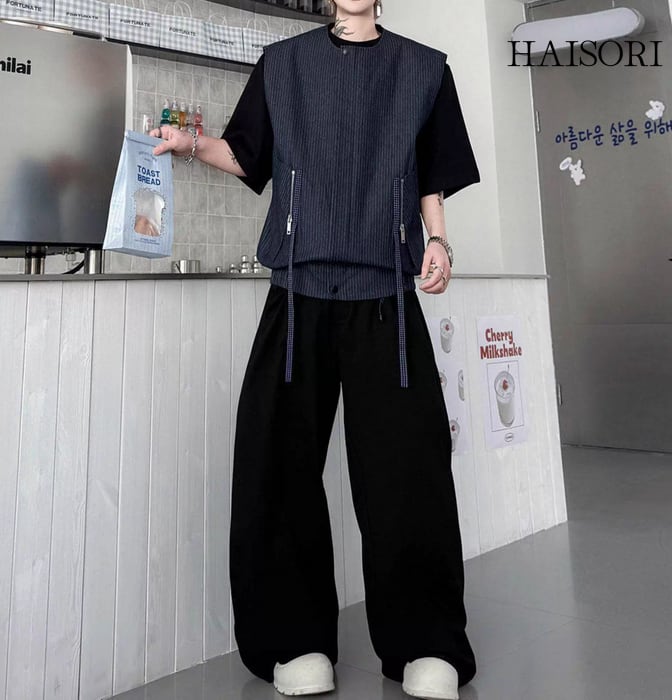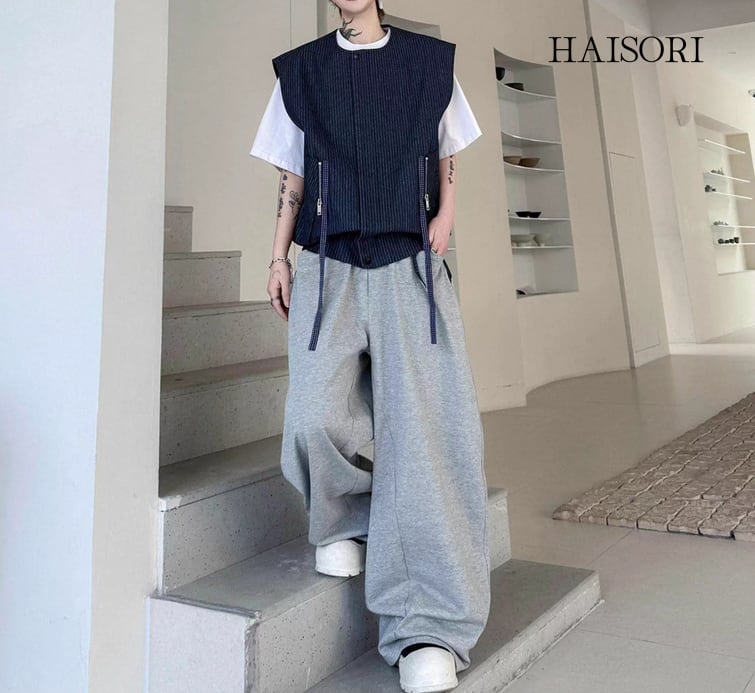 Vネックベスト & ルーズパンツ ネイビーセットアップ