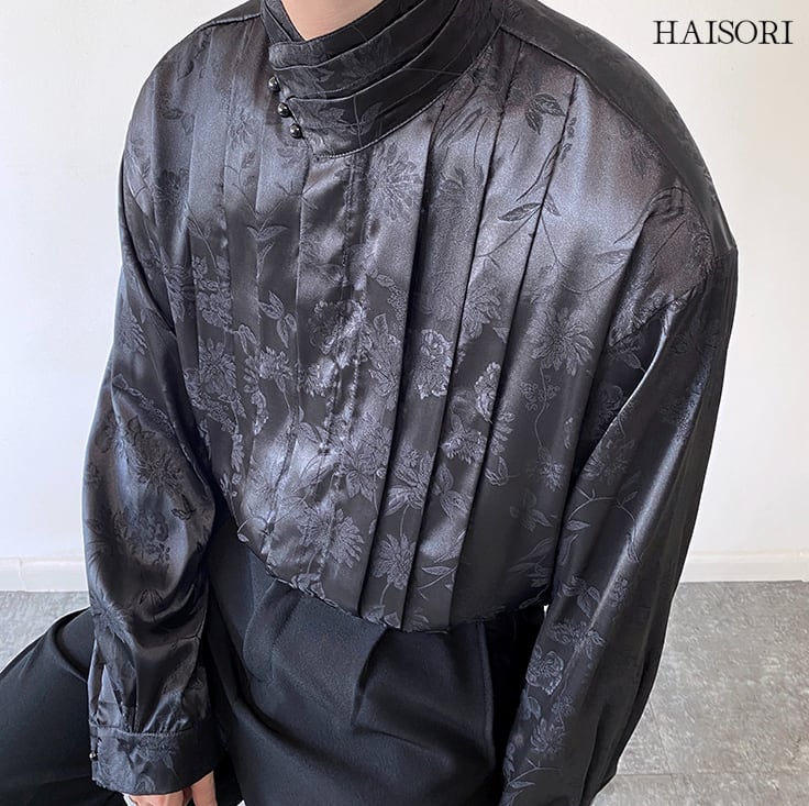 ★【 サラッとしたサテン生地と柄が魅力的なデザイン、エレガントな装いを楽しめるチャイナ風トップス 】