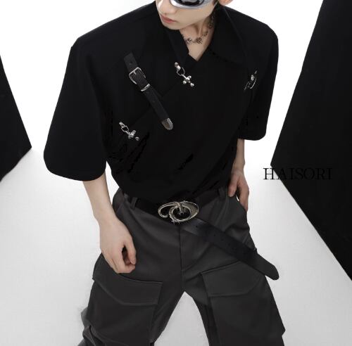 ★【 アクセントとしてベルトとバックルを合わせたデザイン、クールなスタイルのトップス 】