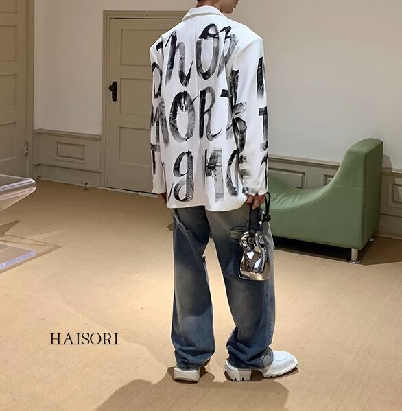 ★【 筆跡の残るタッチで書かれたアルファベット柄がポイント、カジュアルな風合いを感じさせるジャケット 】
