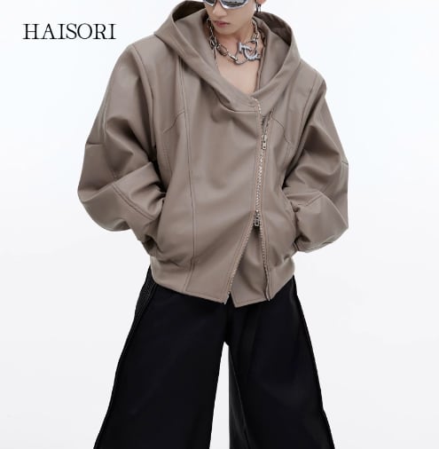 PU fabric deformed hoodie with zipper