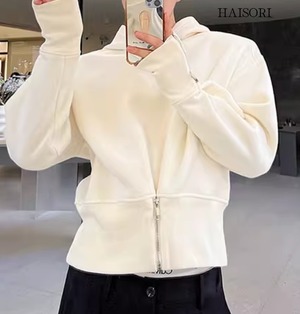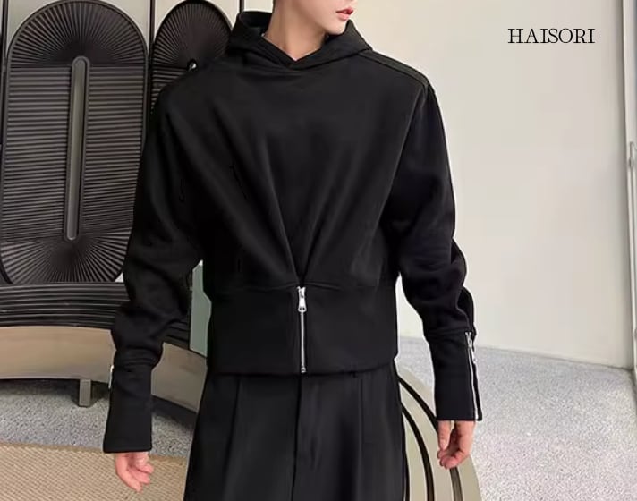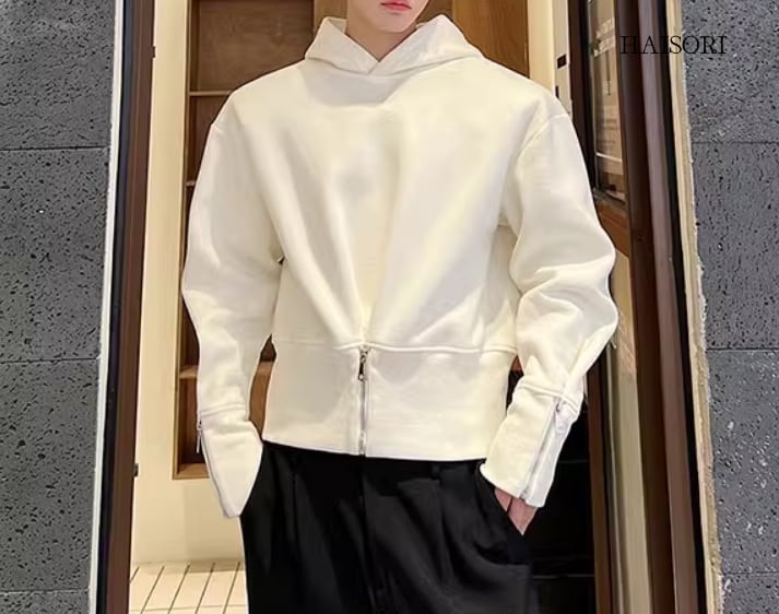 ★【 裾部分のジッパーがアクセントになったデザイン、カジュアルスタイルのフーディー 】