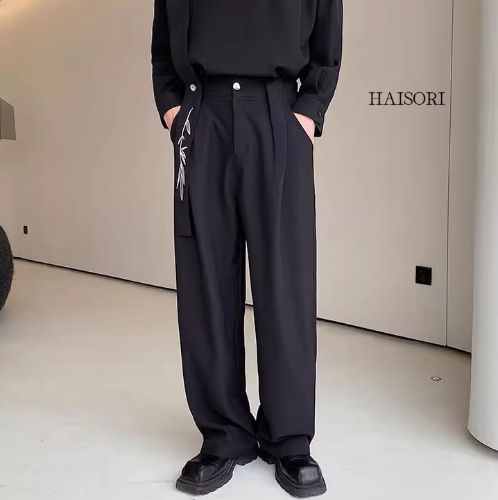 ★【 ワンポイントとして竹の柄を刺繍したデザイン、シックな風合いが魅力のセットアップ 】