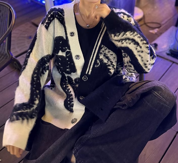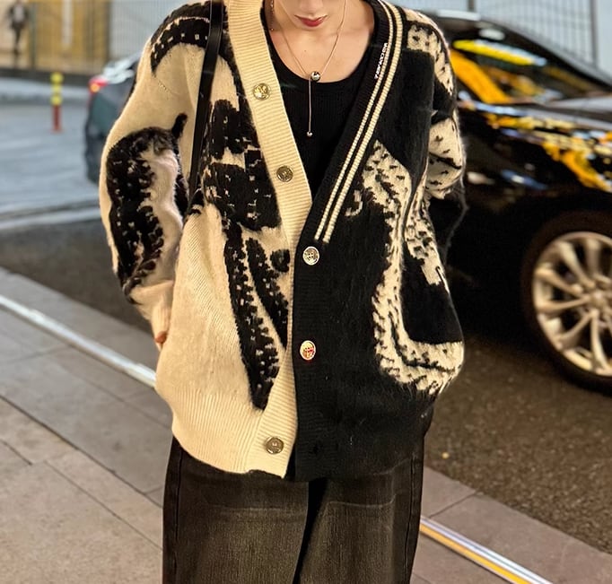 ★【 2色の生地を合わせたバイカラーデザイン、カジュアルスタイルのカーディガン 】