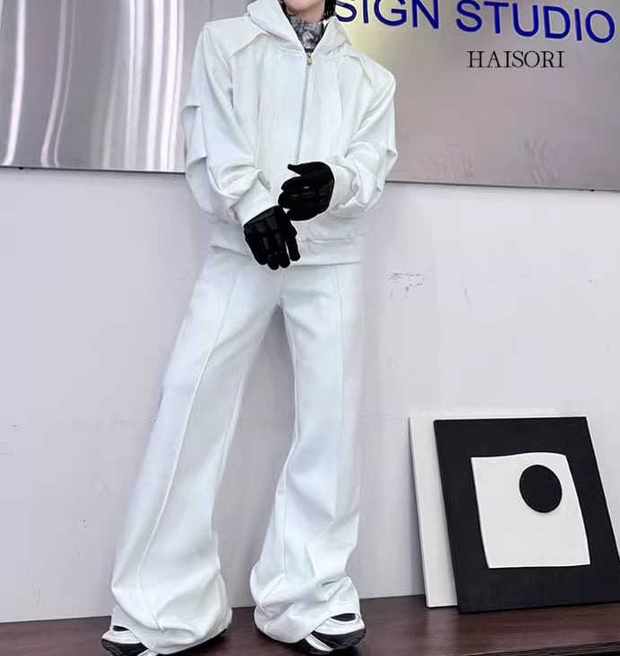 ★【 生地を縫い合わせた切り替え加工でシャープなデザインに、ルーズなシルエットのセットアップ 】