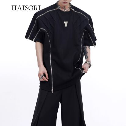 T-shirt with metal parts and zipper design