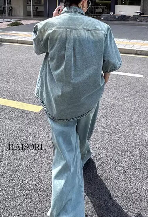 ★【 ウォッシュ加工を施したデニム地がビンテージ感を演出、ルーズなシルエットのセットアップ 】