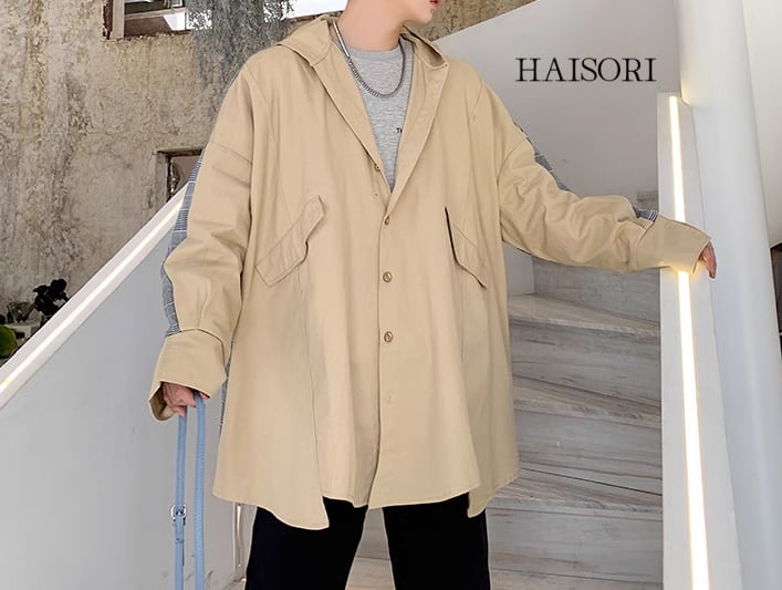 ★【 背面にチェック柄生地を使用した切り替え加工を施したメリハリ感のあるデザイン、カジュアルスタイルのフード付きジャケット 】