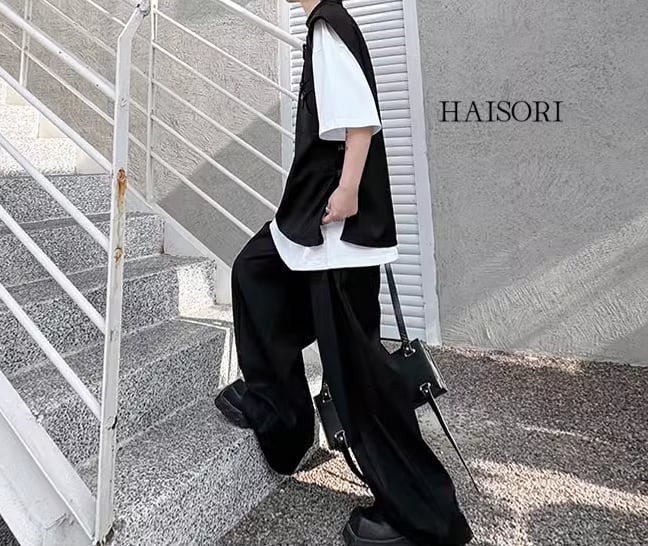 ★【 中華風デザインを取り入れたカジュアルスタイル、ルーズシルエットのベストとパンツのセットアップ 】