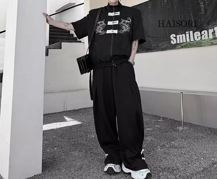 ★【 カジュアルなデザインに中華風の柄を合わせたクールな見た目、ゆったりと動きやすいセットアップ 】
