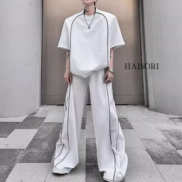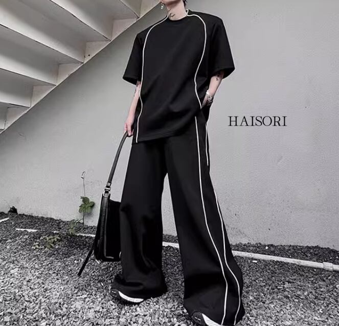★【 ライン模様をアクセントに取り入れたシンプルめデザイン、ゆったりサイズのカジュアルなセットアップ 】