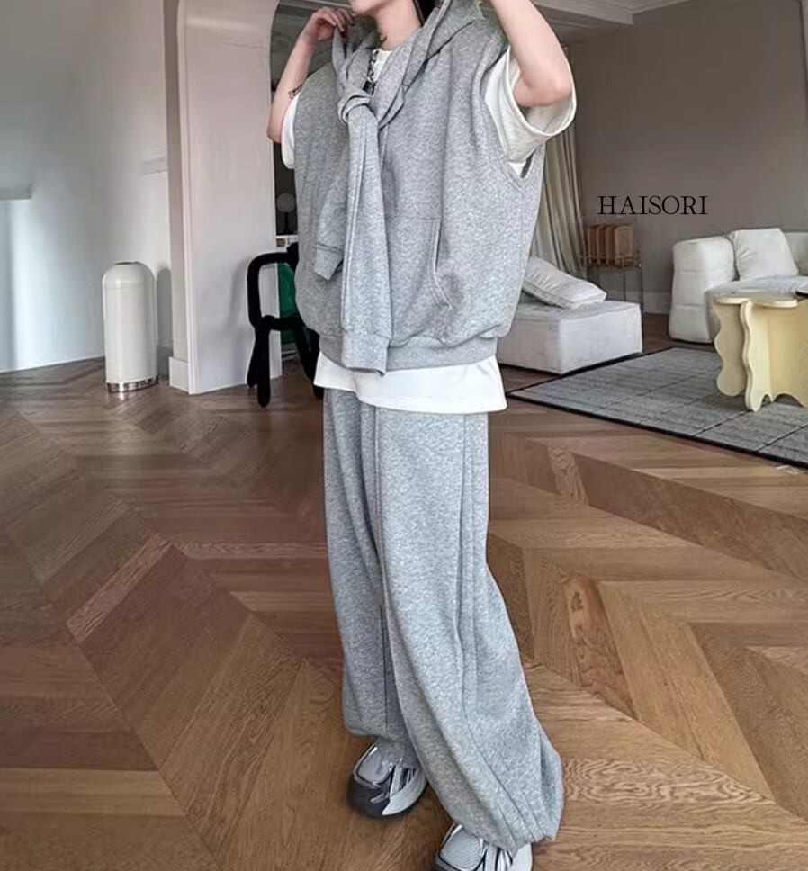 ★【 個性的な形状のフード付きのデザインがポイント、襟元を縛ったり外したりお好みのスタイルを楽しめるセットアップ 】