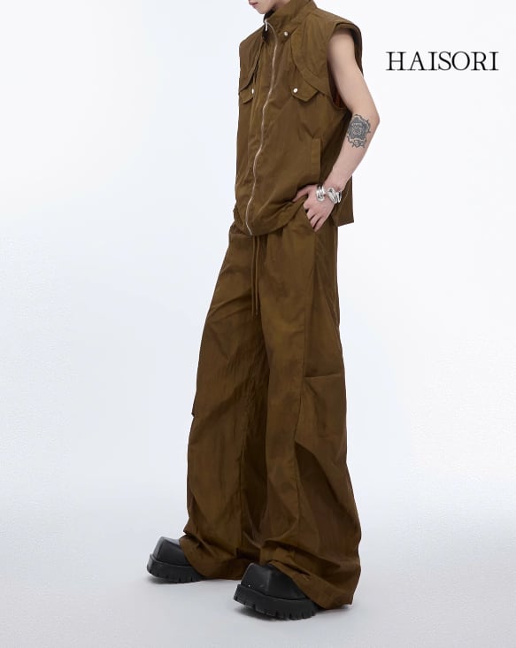 ★【 スナップボタンで脱着が可能なフード付きのトップスがポイント、ルーズシルエットのスタイリッシュなセットアップ 】