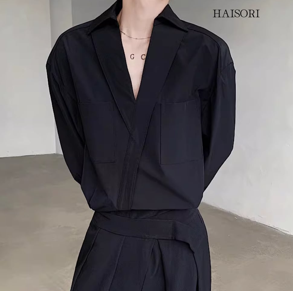 ★【 落ち着いたシックな色合いがポイントのすっきりとしたデザイン、スタイリッシュなVネックのトップス 】