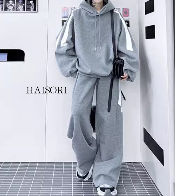 ★【 落ち着いた色合いのルーズなスウェットデザイン、ラインがアクセントになったセットアップ 】