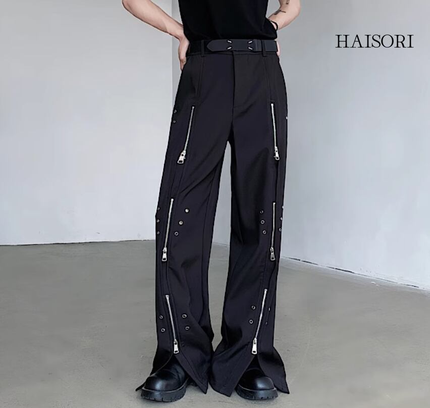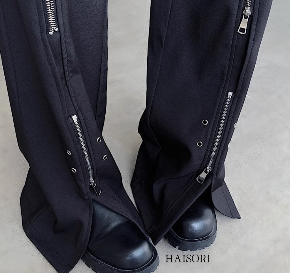 ★【 ハトメやジッパーをアクセントとして取り入れたクールなデザイン、ルーズシルエットのワイドパンツ 】