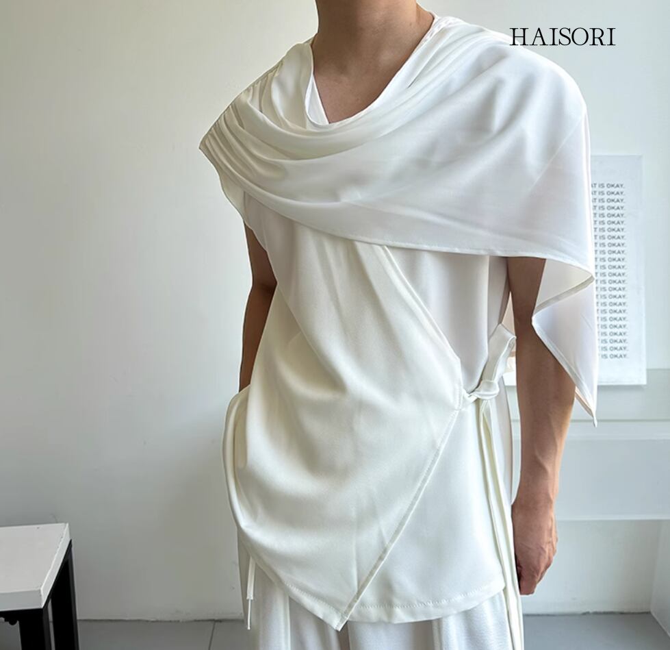 ★【 ドレープ感のあるデザインでサイドでストラップで留める仕様、薄手生地の涼し気なトップス 】