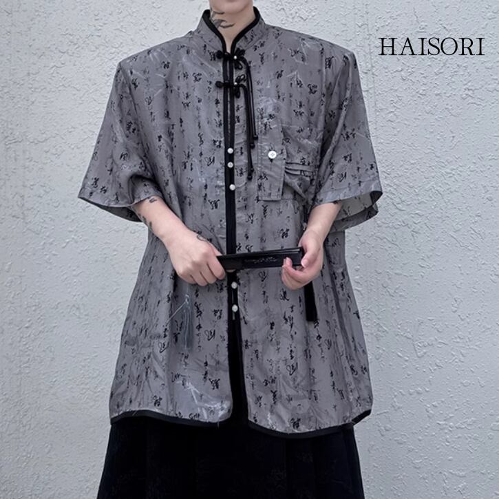 ★【 柄入り生地を使用した中華風スタイル、カジュアルスタイルのゆったりめのトップス 】