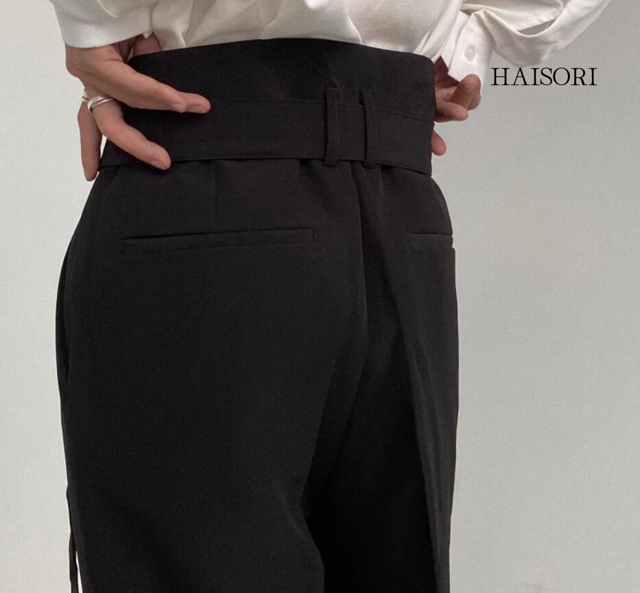 ★【 ハイウエストデザインを取り入れたスタイリッシュな見た目、ベルト付きのクールなボトムス 】