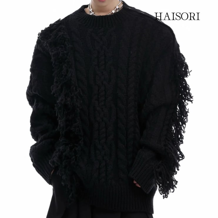 ★【 全体にほつれたデザインを入れた個性的な見た目、スナップボタン付きで外すなどお好みのスタイルを楽しめるセーター 】